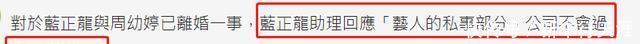 是以她遴选了投资挣钱念念要我方搞行状没念念到还因此堕入到负债14万被催讨的风云之中。 三、蓝正龙和周幼婷 2011年蓝正龙和周幼婷证据了婚配相关九年后这段婚配走向了散场。 在好多看客的眼里两东说念主的仳离是曲常瞬息的。