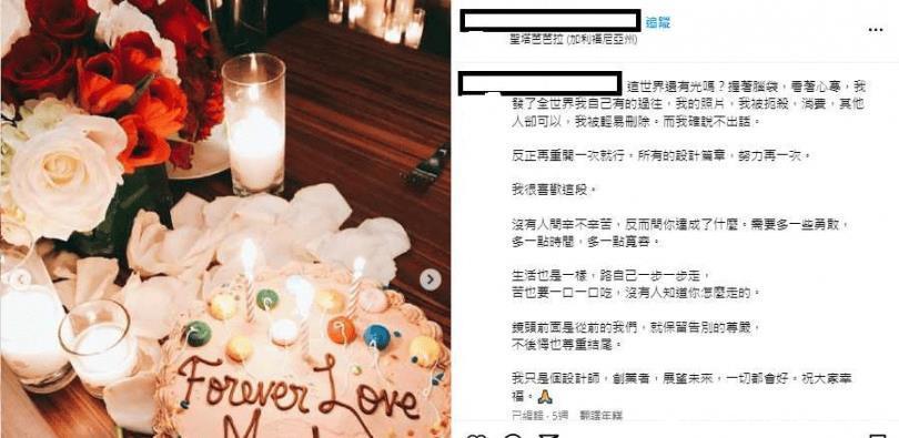 固然Robert高情商发言取得许多掌声,不外没2天,他就在私东说念主IG、脸书牢骚,无奈叹:「这寰宇还有光吗?」并PO出多张他小红书帐号截图,上面有多张布满玫瑰的烛光晚餐照,其中一张蛋糕像片,蛋糕上面还有大大手写字「FOREVER LOVE Mandy」,看似是和Mandy议论的回忆照。